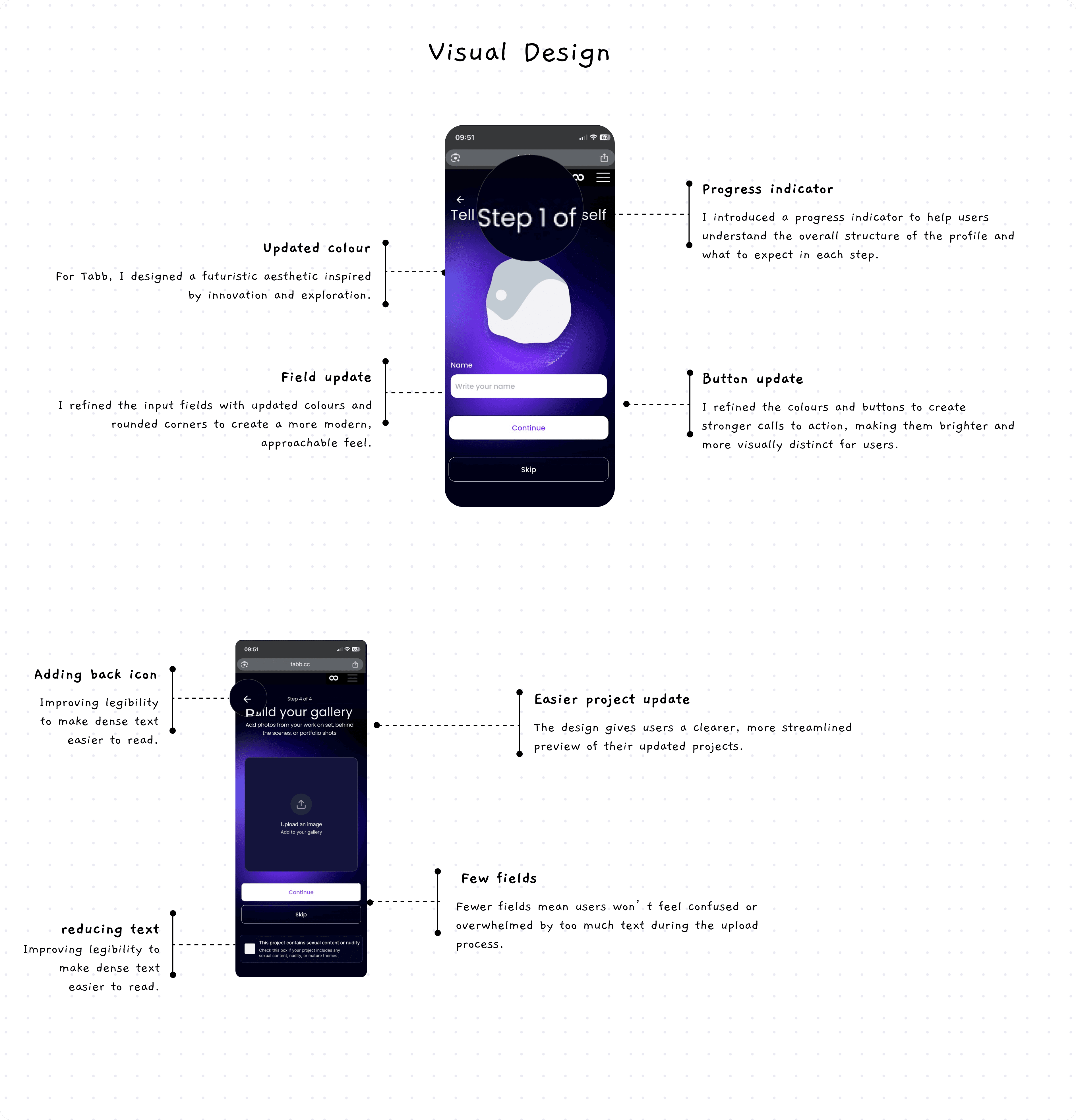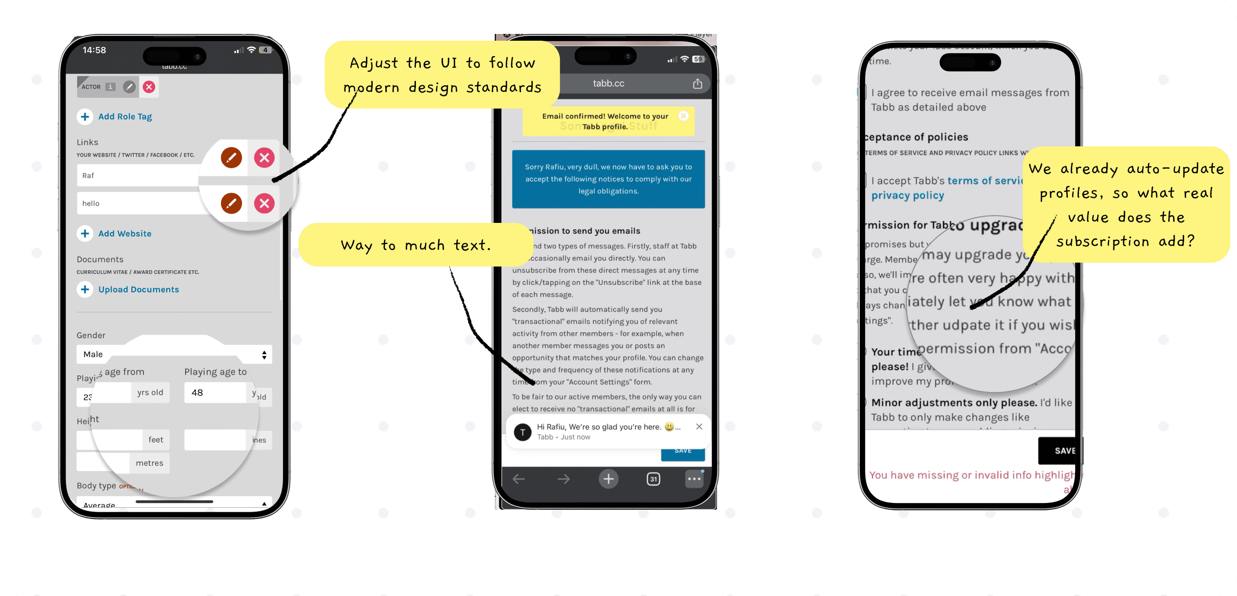 When I joined the project, Tabb already had a passionate community of filmmakers, actors, and theatre professionals. But their first impression — the onboarding flow — didn’t match that creative energy. It felt outdated, text-heavy, and uninspiring. My goal was to change that.